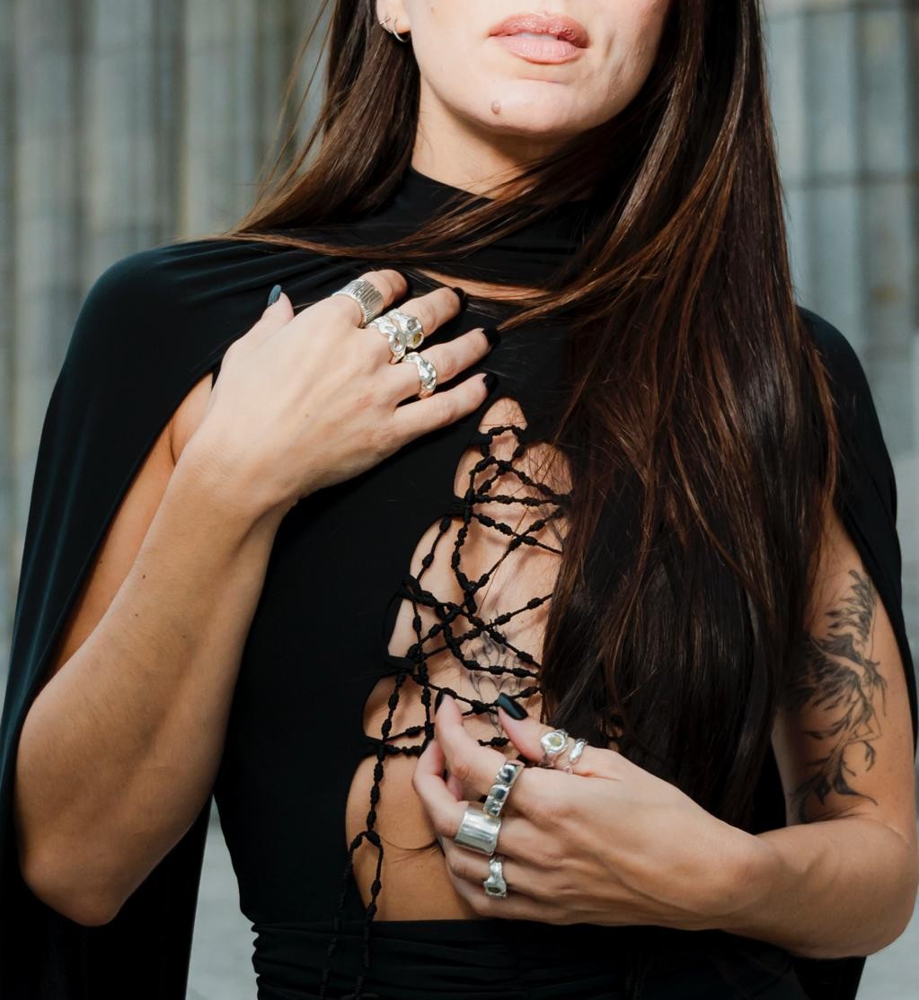 Look: Black Mamba, Joyas: Hot Trash, Botas acordonadas: Lara Casa