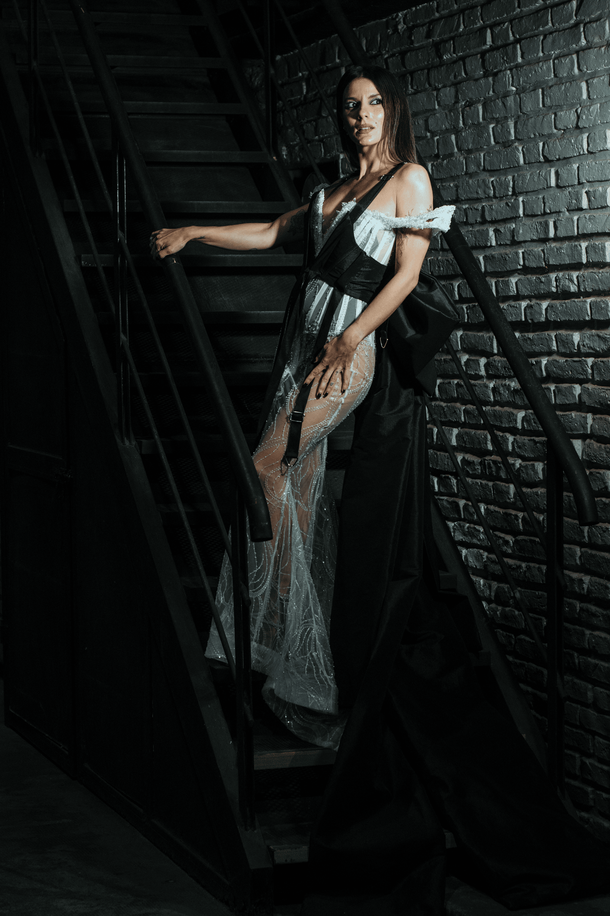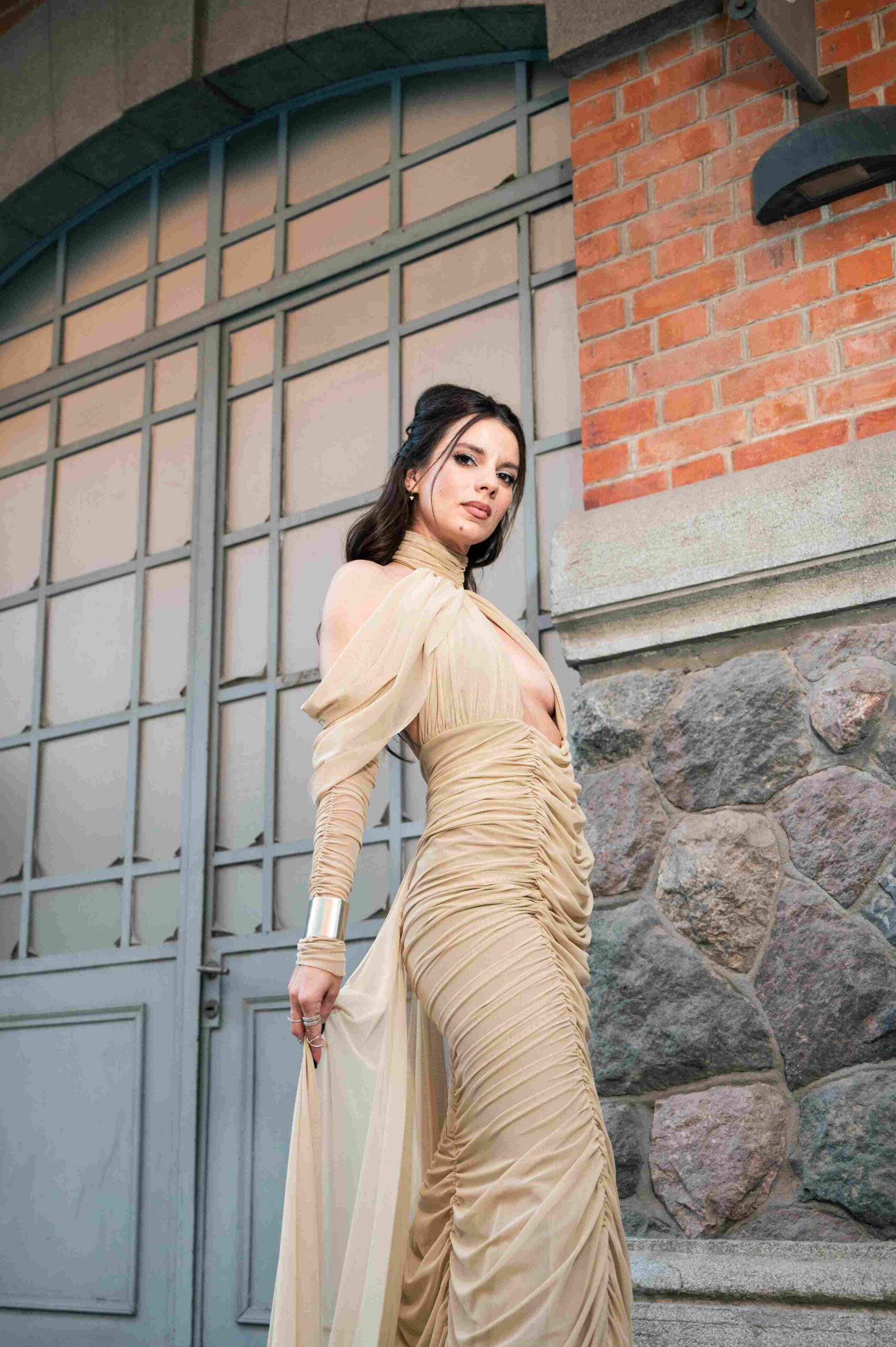 Look: Rocio Rivero, Joyas: Swarovski, Sandalias: Ricky Sarkany, Clutch: Flaneur, Pelo: Cristina Cagnina.